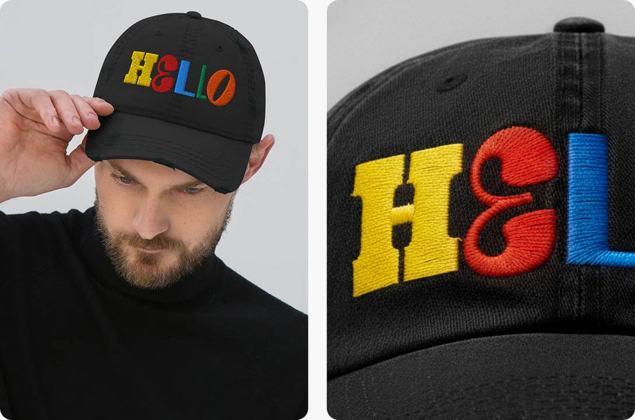 - 3D puff embroidery – Raised stitching that adds depth, perfect for caps and bold logos.